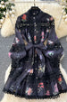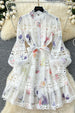 Lace panels and puff sleeves bring vintage charm to this floral mini, balanced by a high neckline and belted waist. Counted among chic garden wedding guest dresses, the Alice offers a relaxed fit with modern detail. Its botanical print and pearl button closure create a polished look ideal for outdoor ceremonies and daytime gatherings.