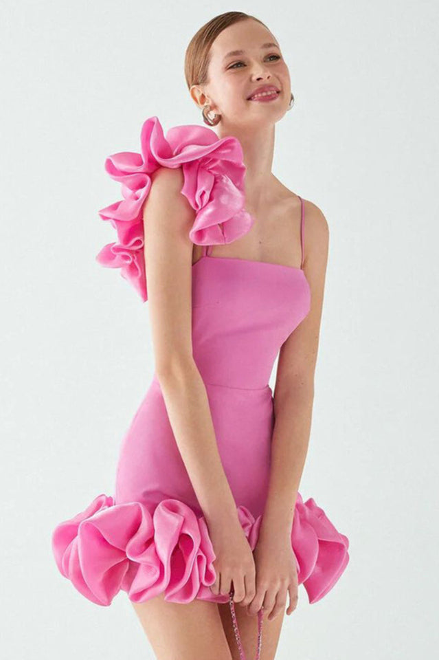 Embrace vibrant charm with the Pink Flower Trim Strap Mini Dress. Adorned with delicate floral accents and adjustable straps, this playful mini dress exudes feminine elegance. Ideal for any occasion, it offers a refreshing pop of pink and a flattering, fun design.