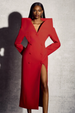 Sculpted Self-Stand Collar, Strap Inside the Lapel, Blazer Dress, Double-breasted.
