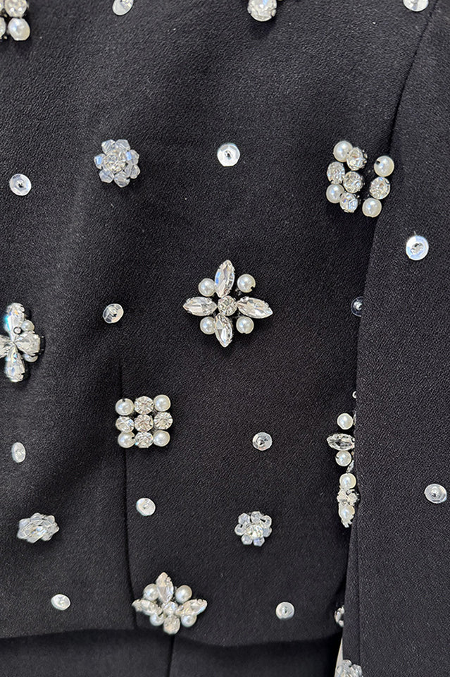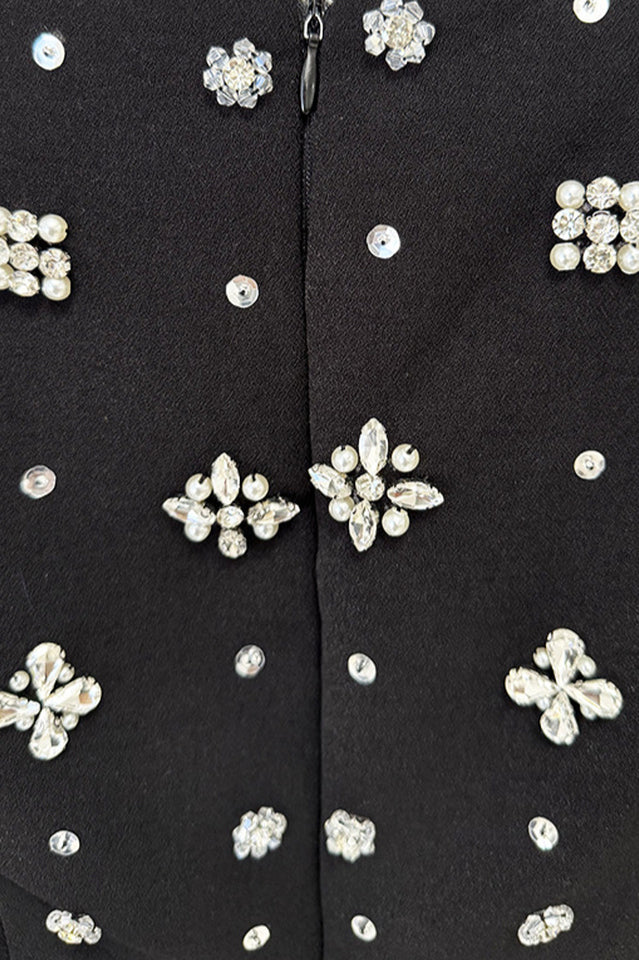 The Luna Embellished Cape Sleeve Maxi Dress brings dramatic elegance to evening occasions. With sequins and flowing cape sleeves, this black maxi dress captures bold sophistication. Designed as one of the most refined formal wedding guest dresses, it offers glamour, confidence, and unforgettable style for weddings and upscale celebrations.