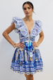 Kyla Printed Plunge Neck Mini Dress