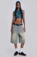 Our light wash jumbo jorts are cut from a light blue placement denim wash, these jean shorts feature three-quarter length legs and functional pockets, complete with a Colossus fit ensuring a comfortable fit.