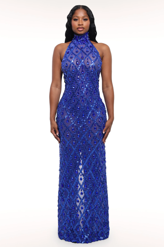 Make an entrance with the Liora Sequin Crystal Maxi Dress In Dark Nude. Featuring an all-over sequin design and exquisitely-embellished crystals, this glamorous dress will have you sparkling from head to toe. A back split creates a timeless silhouette that's perfect for any special occasion.