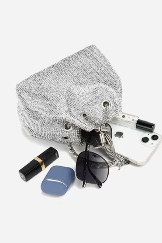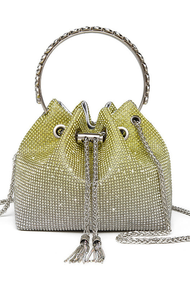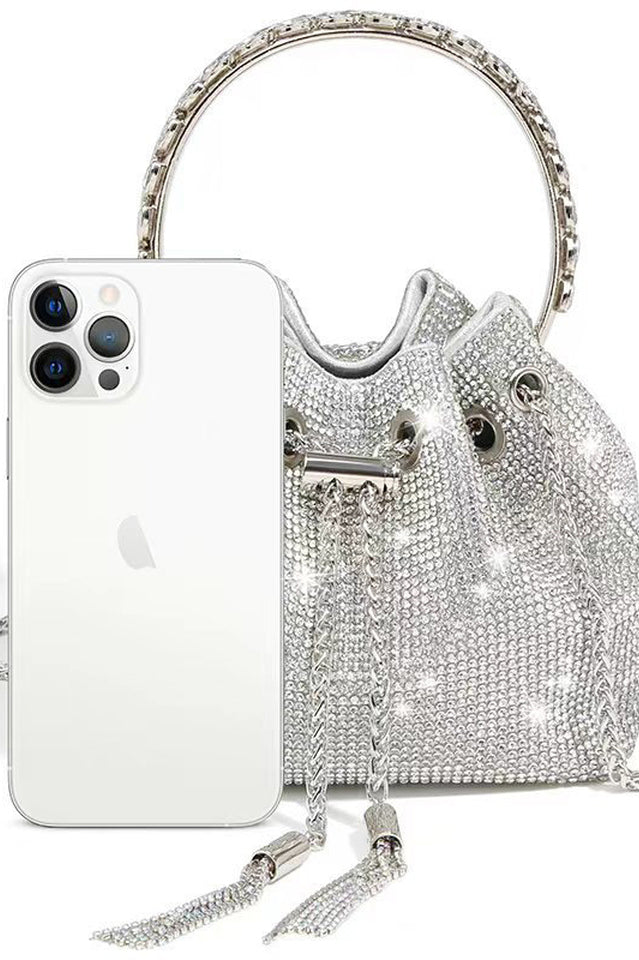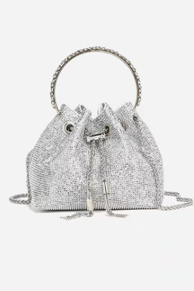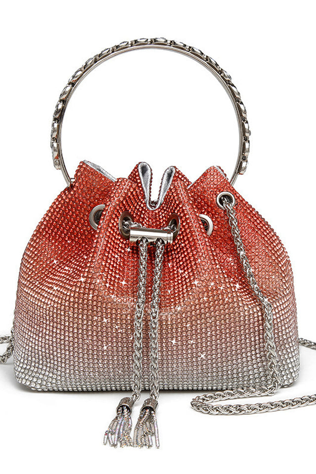 Our signature Mattea Crystal Embellished Bucket Bag is crafted from hot pink crystal. A statement accessory to love forever, it is finished with a sparkling crystal top handle and a sleek drawstring chain that cinches the supple shape. Take yours with you everywhere.