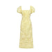 3D Floral Applique, Square Neckline, Puff Sleeves, Diamante Embellishment, Midi Length.