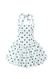 Halter Neckline, Classic Polka Dots, Bubble Hem, Shirred Back Panel, Mini Length.